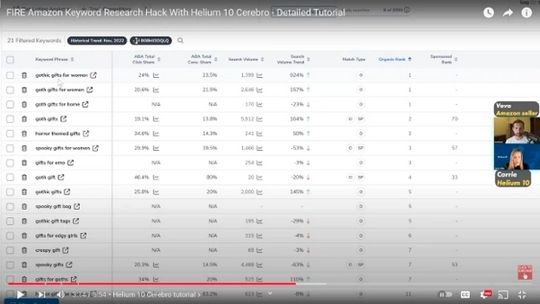Отже, ти можеш повернутися назад і подивитися, яке місце ти займаєш за конкретними ключовими словами в топ-10, наприклад, spooky gifts (страшні подарунки) або будь-якому іншому продукту.