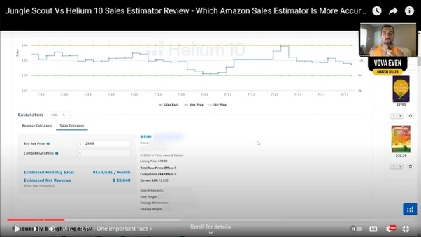 Оцінювач продажів Helium 10 схожий на помічника в Amazon FBA, показуючи тобі ситуацію та кількість продавців.