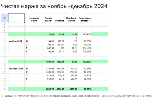 Високий відсоток реклами каже, що книгу мало показують в органіці, і всі продажі йдуть лише через рекламу.