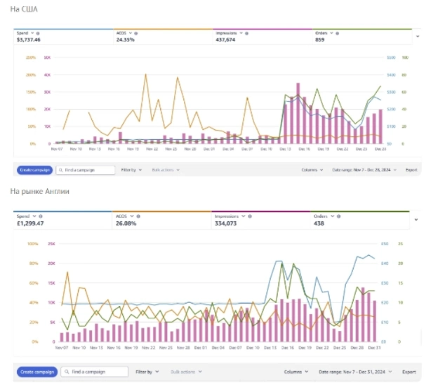На ринку США ми витратили 3.737 $, Англії 1.229£ та на ринку Канади 539.95 канадських доларів.